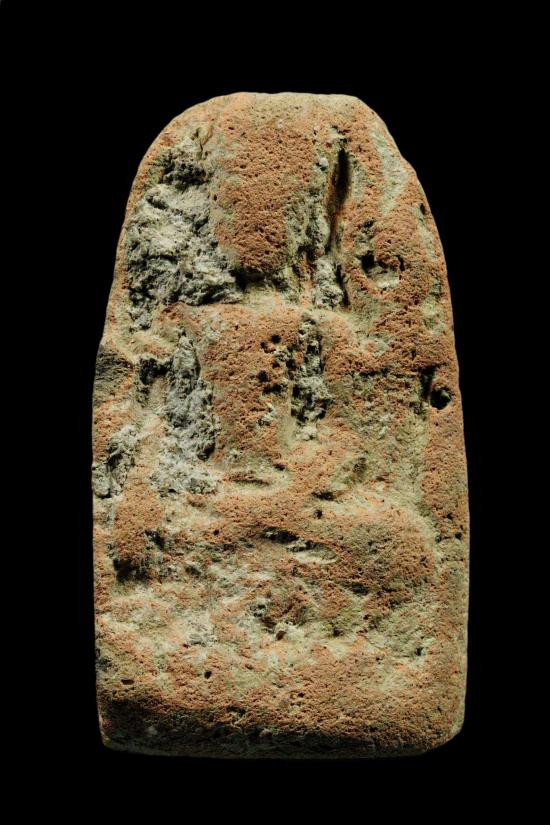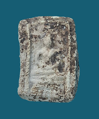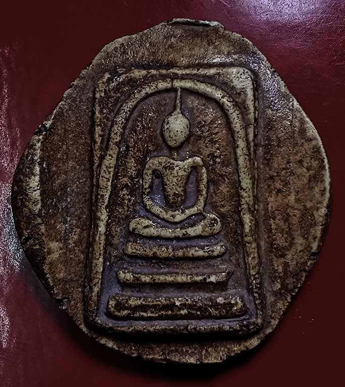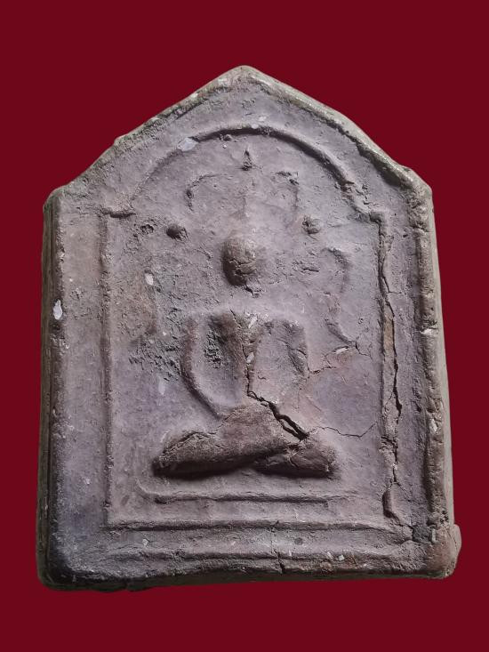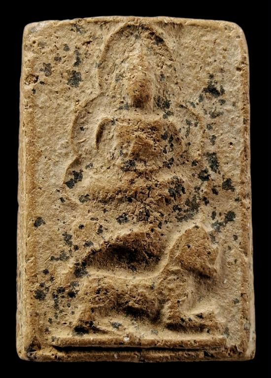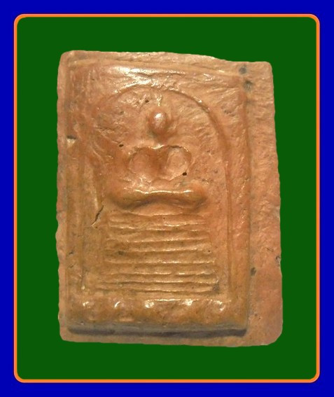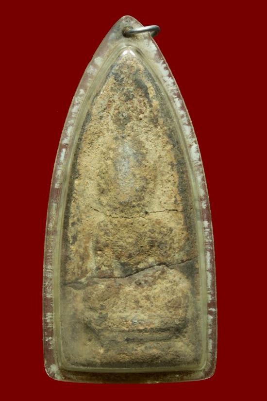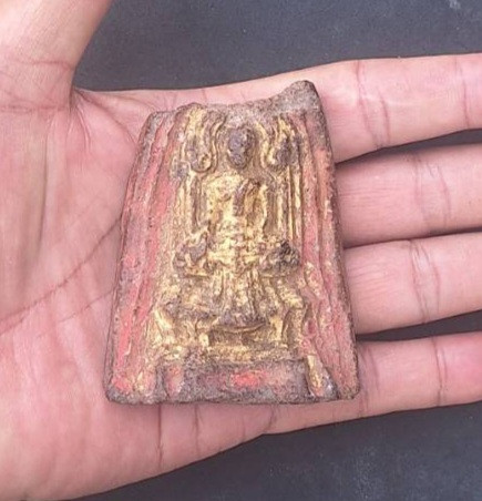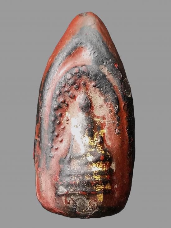 พระเนื้อผงชุบรักเก่า หลังฝังตระกรุดเก่าไม่ทราบที่ เคาะเดียวแดง |