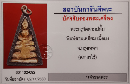 พระกรุวัดสามปลื้ม พิมพ์สามเหลี่ยมใหญ่ ผิวเดิม รักเก่าเป็นร้อยปี เลี่ยมเงินโบราณสุดคลาสิก มาพร้อมบัตร G ครับ พระมีซ่อมนะครับ |