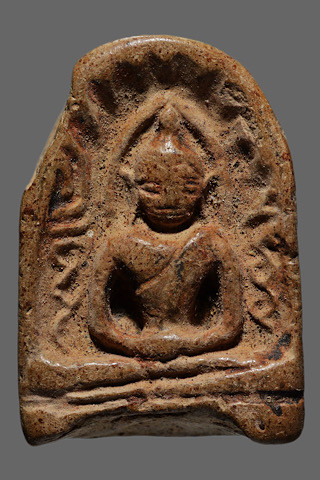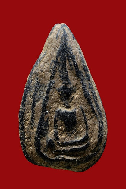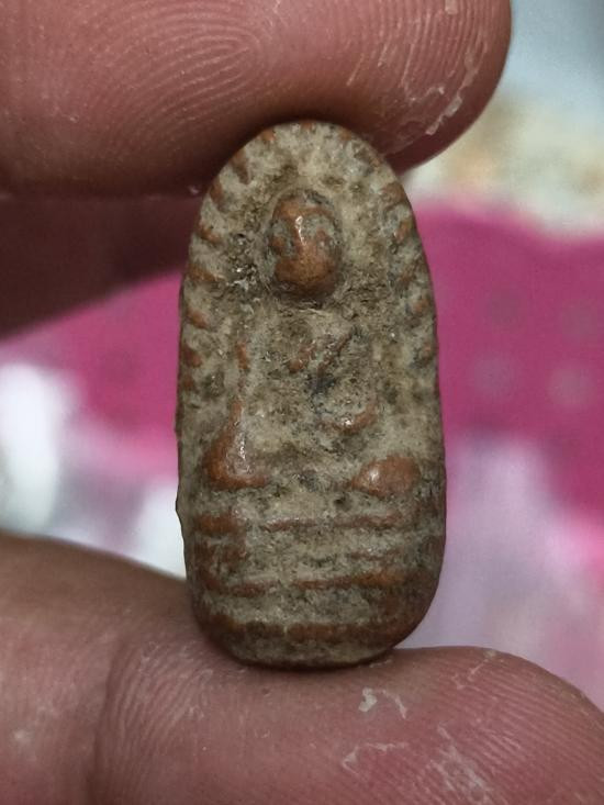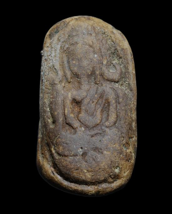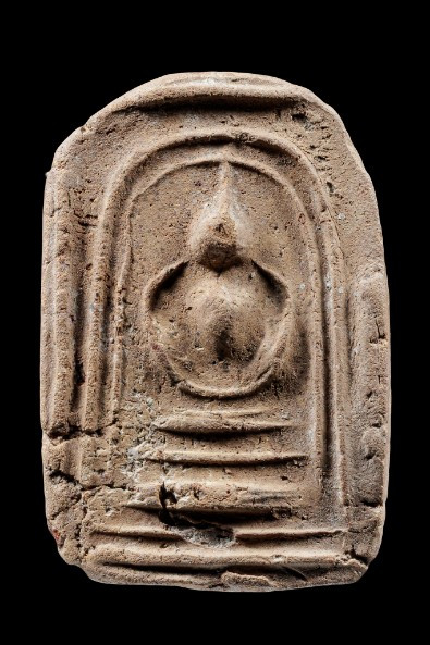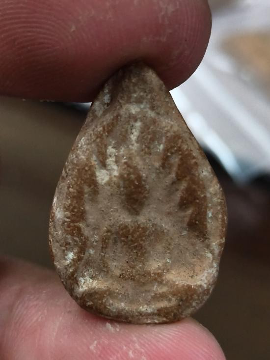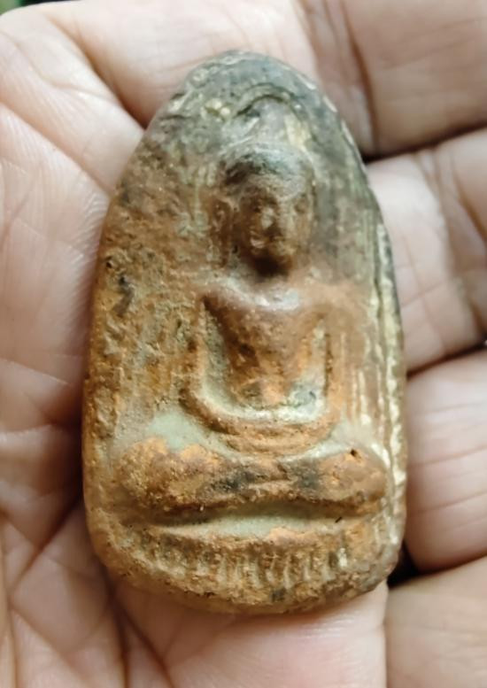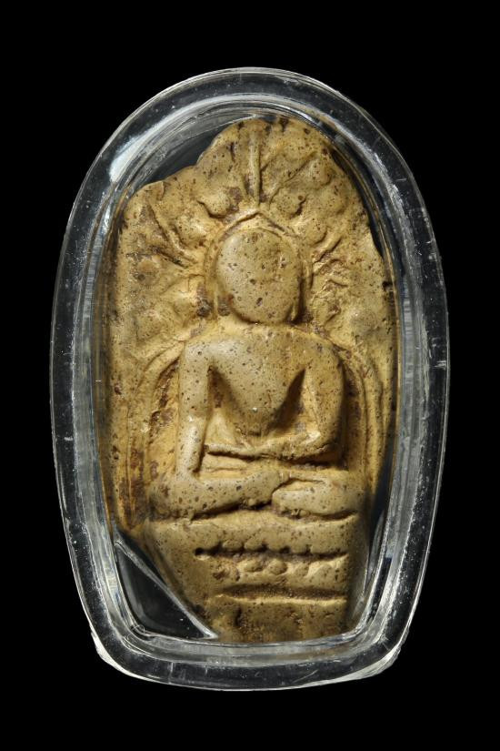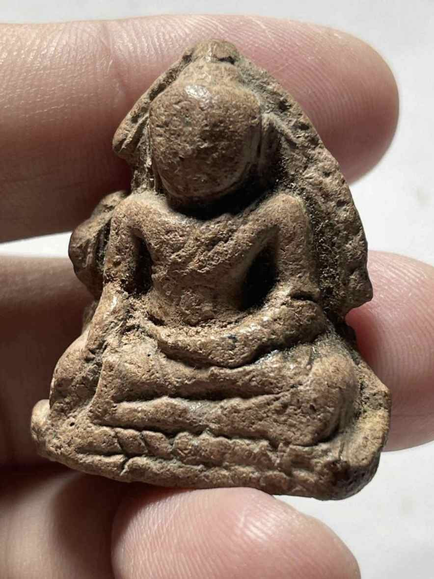 พระพิมพ์เม็ดบัวหลังอูมเนื้อดิน มีลงรักเดิมมา |