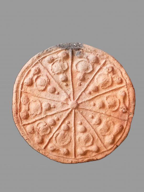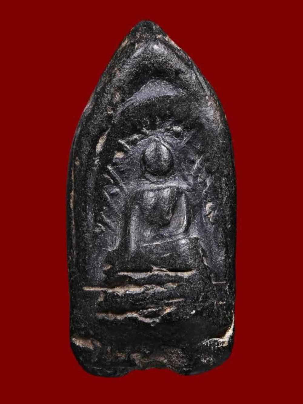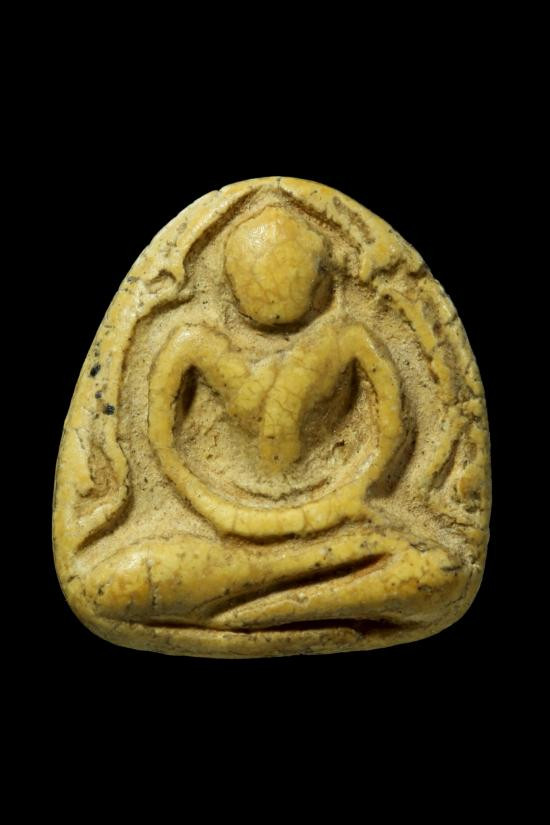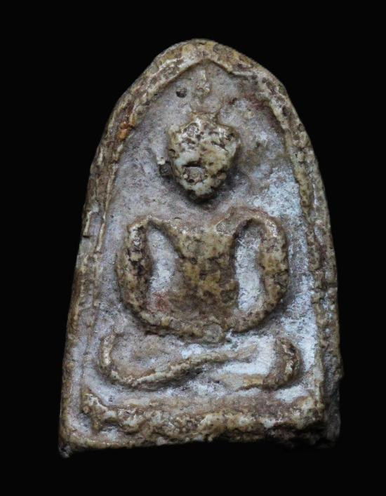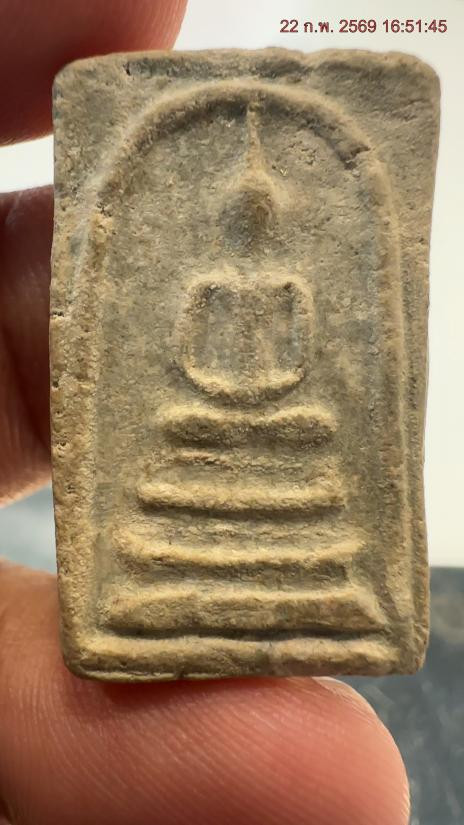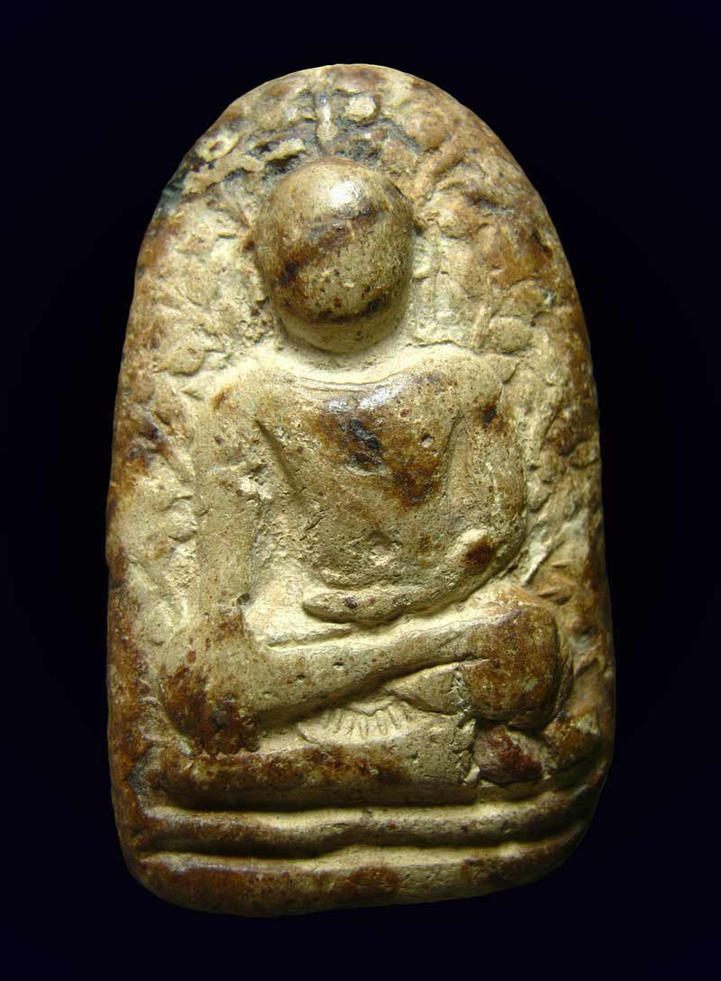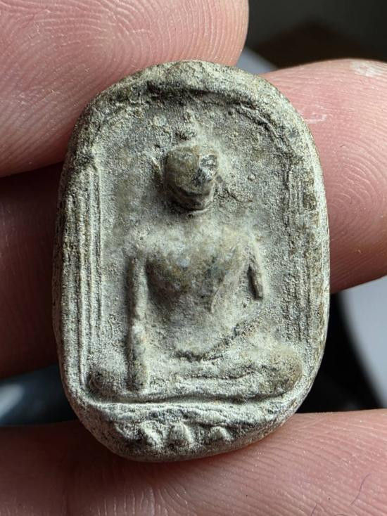 พระพิมพ์เม็ดบัวหลังอูมเนื้อดิน มีลงรักเดิมมา |