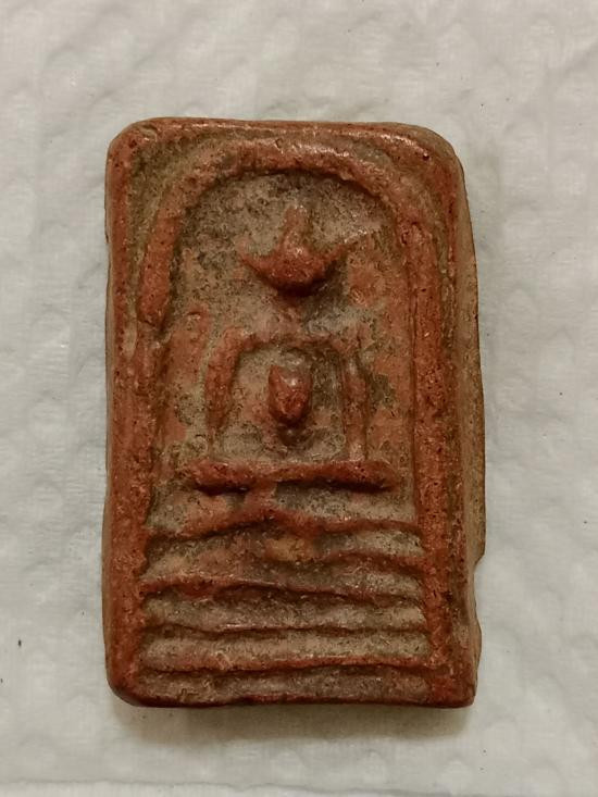 ( แดงแรก ) พระกรุศรีสัชนาลัย สมาธิฐานบัว / เนื้อดินแร่หมัดไฟ เนื้อเทาอมเขียว |