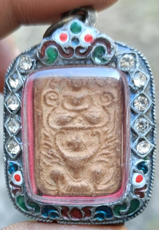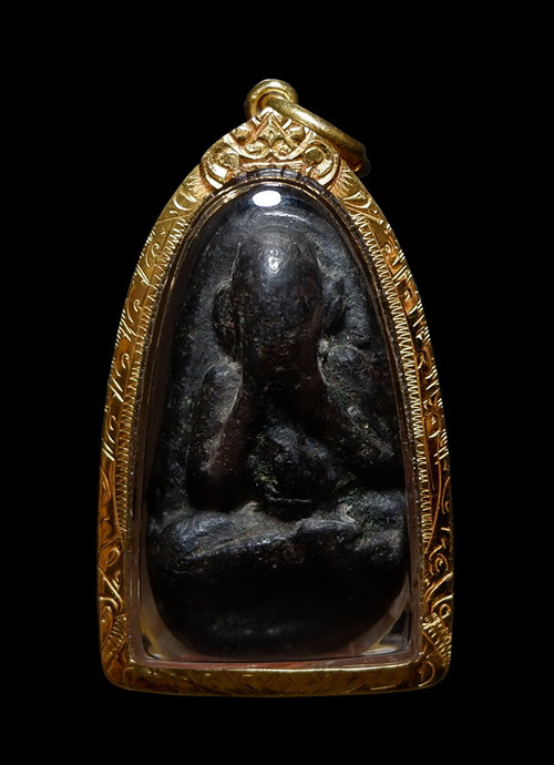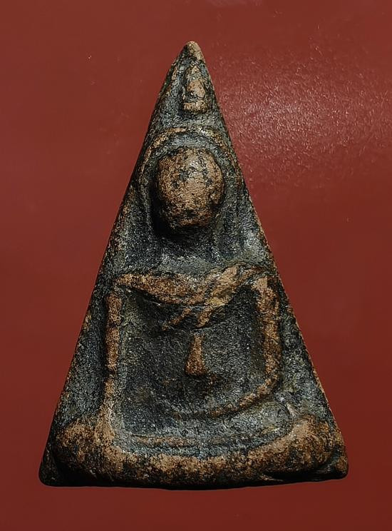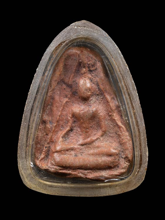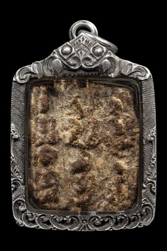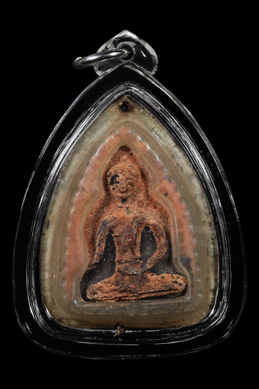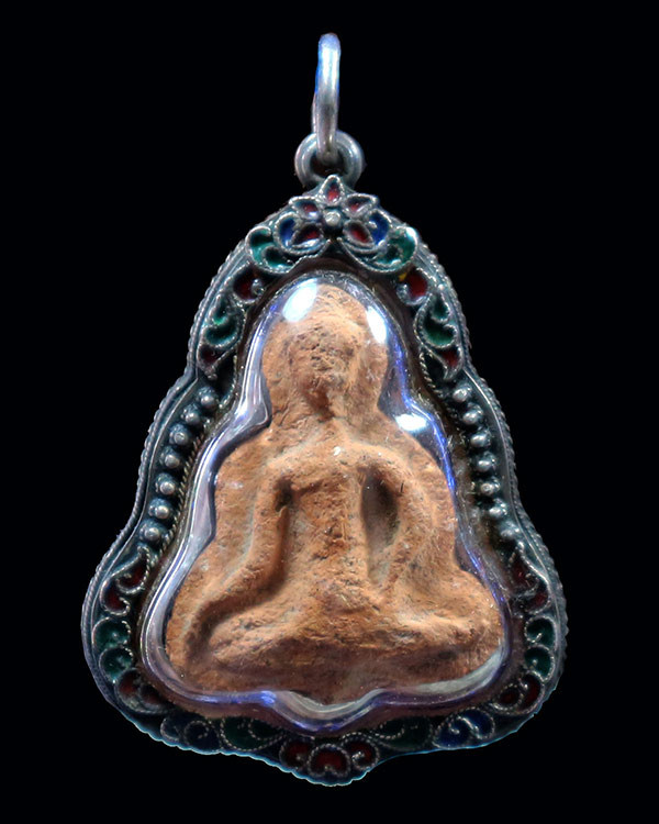 เคาะเดียว พระกรุ วัดกระชาย (วัดกระซ้าย) มารวิชัย พิมพ์ใหญ่ กดลึก ความเก่า พิมพ์ทรง วงแขน อ่อนช้อย ตัดเข้ารูปแบบยอดธง เลี่ยมเงินลงยาสุโขทัย พร้อมขึ้นคอ |