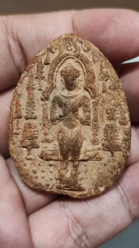 OOK55. พระเนื้อดิน พิมพ์ยืนปางห้ามสมุทร กรุเก่า เนื้อแห้งจัด (เคาะเดียวแดง) |