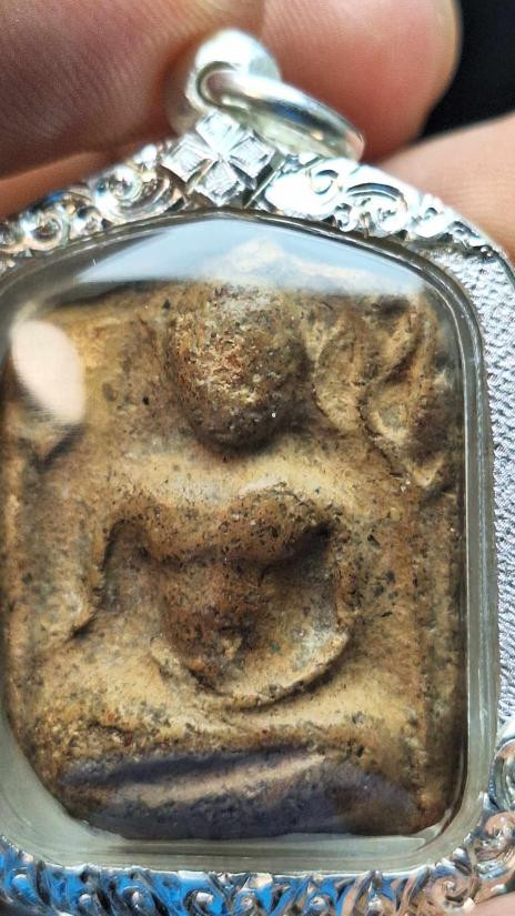พระนางพญา ไม่ทราบที่ เลี่ยมจับขอบเงินสภาพหักชำรุดตามรูป |