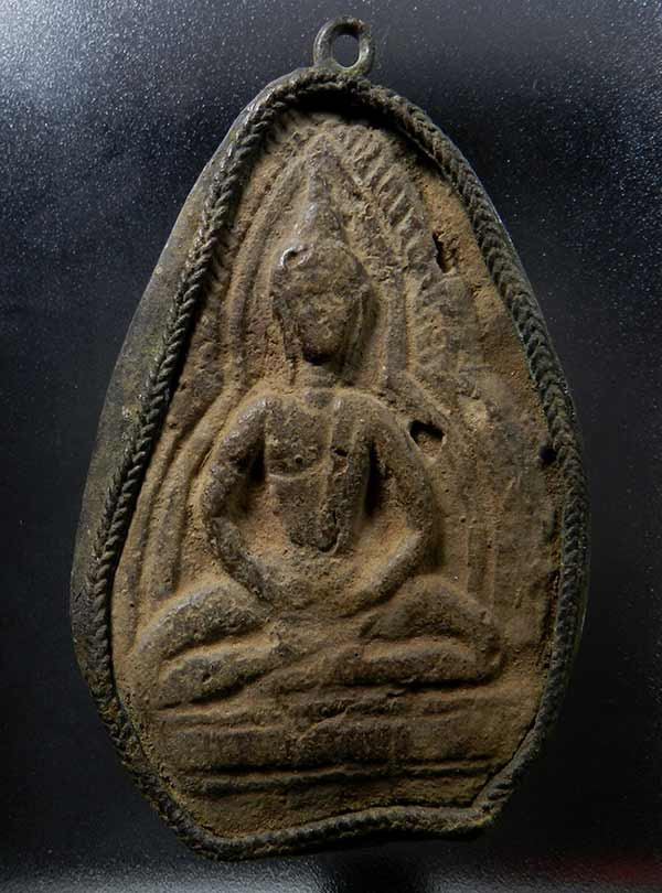 << วัดใจ >> พิมพ์พระพุทธชินราช ปางมารวิชัย กรุวัดทับผึ้ง อ.ศรีสำโรง จ.สุโขทัย หลังเรียบ |