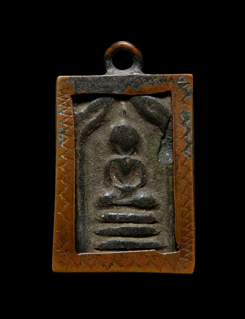 พระนางพญาเนื้อดินเก่าเก่าไม่ทราบที่ เลี่ยมกรอบเงินแท้ |