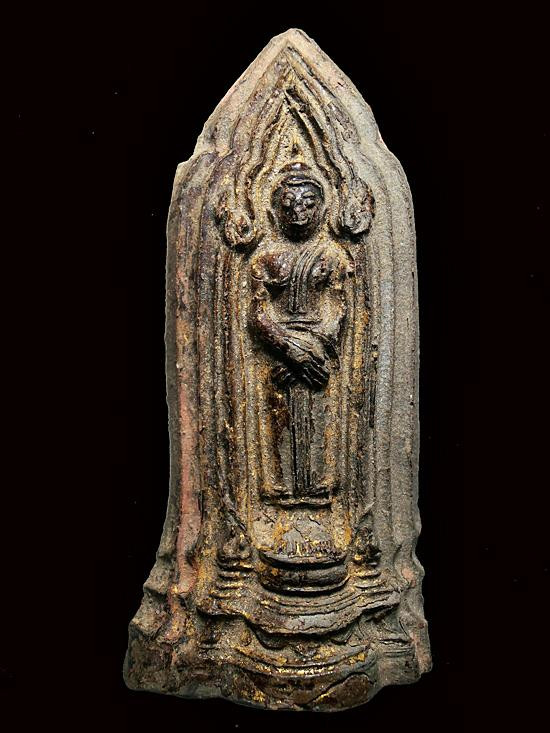 พระนางกำแพงกลีบบัว พิมพ์เกศแฉก เนื้อดิน กรุลานทุ่งเศรษฐี จ.กำแพงเพชร สภาพหยอดหน้าใหม่ |
