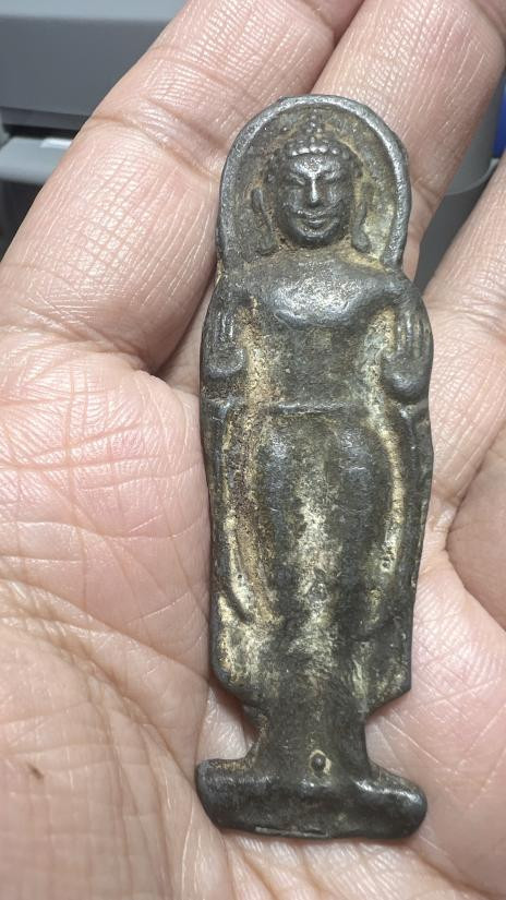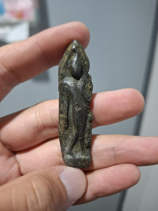 พระกรุพิมพ์อุ้มบาตร (ไม่ทราบกรุ)เนื้อชินเก่า ขนาดองค์พระ กว้าง 2.4cm สูง 7 cm สภาพเก่ามีอายุ |