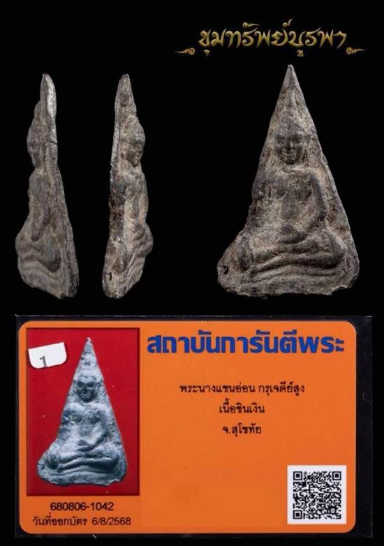 พระนางข้างเม็ด กรุวัดเขาพนมเพลิง เนื้อชินเงิน จังหวัดสุโขทัย พร้อมบัตร สวยเดิมๆ |