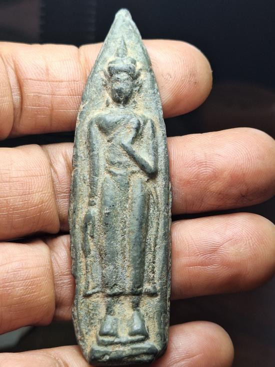 พระลีลาระเวง กรุวัดพระศรีรัตนมหาธาตุ เนื้อชินเงิน จ.สุพรรณบุรี พระกรุเดียวกับผงสุพรรณและมเหศวร |