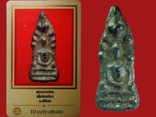 พระนาคปรก เนื้อชินเขียว พิจิตร + บัตร |