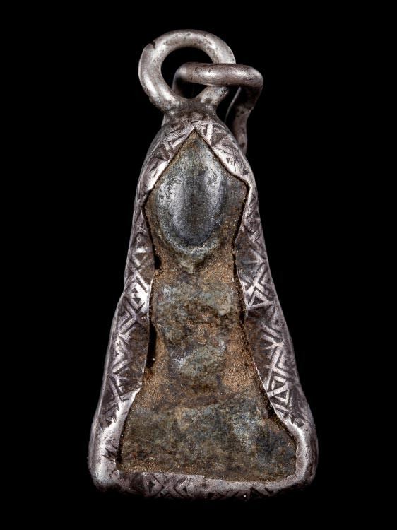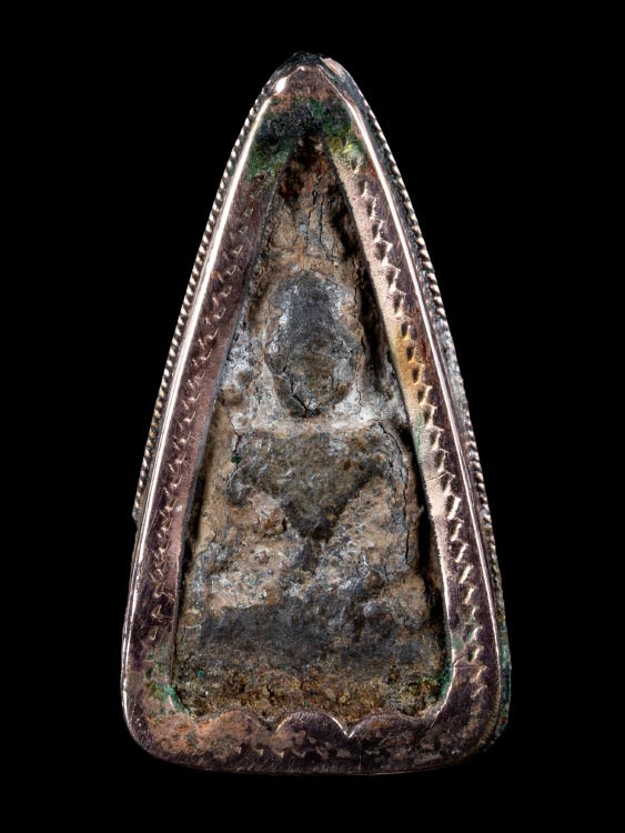 พระโคนสมอ ห้อยเท้า กรุวังหน้า เนื้อชินเงินเลี่ยมเงินโบราณ สภาพใช้นะครับ เอาไว้ห้อยได้พระในตำนาน |
