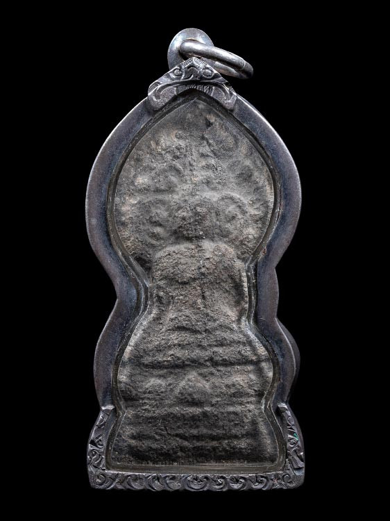 วัดใจ พระอู่ทองซุ้มเรือนแก้ว กรุวัดมหาธาตุ เนื้อชินเงิน จ.สุโขทัย เลี่ยมเงินพร้อมใช้และบัตรรับรองจากจีพระ |