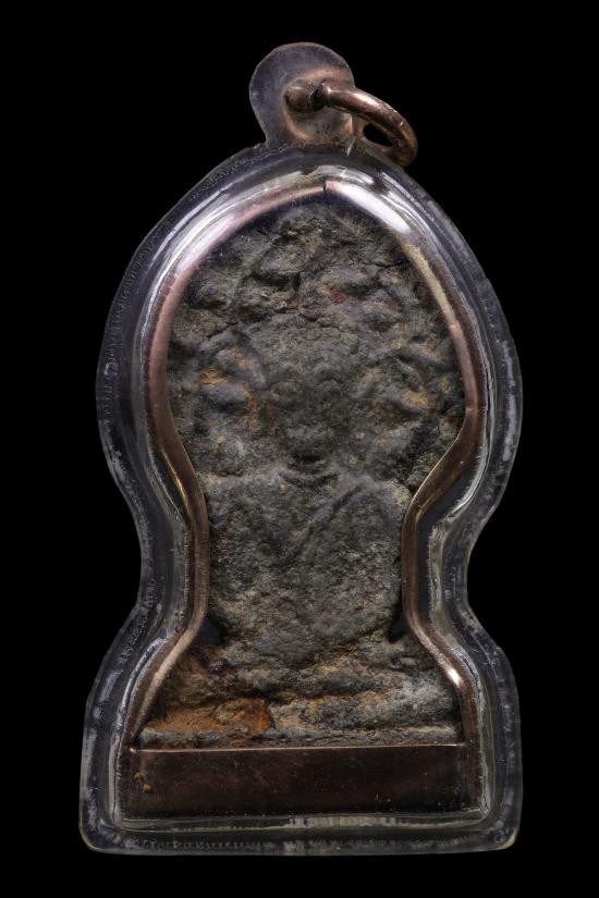 A91. พระเจ้าเจ็ดพระองค์ หลังสิงห์ กงจักร เนื้อชินตะกั่ว เลี่ยมพลาสติกเก่า เคาะเดียวเเดง |