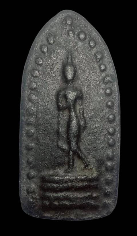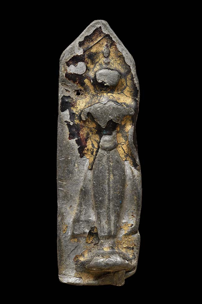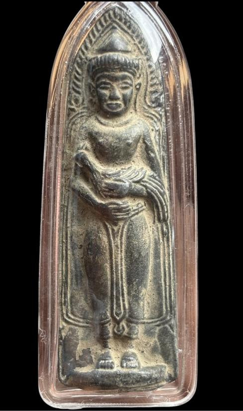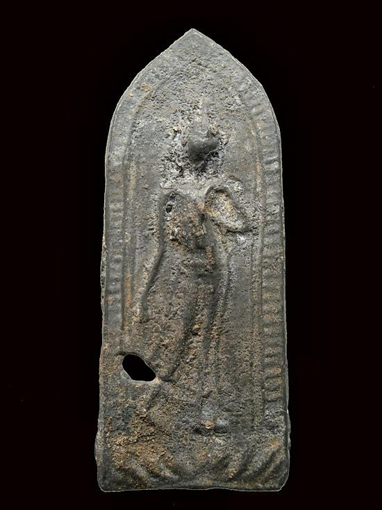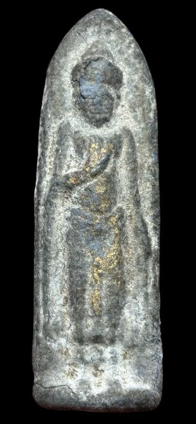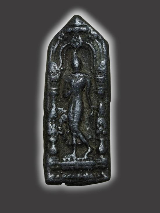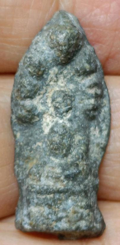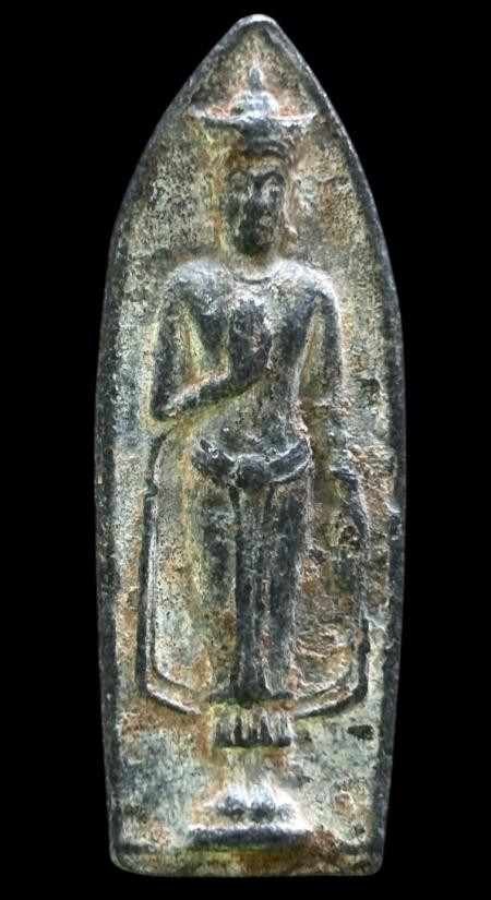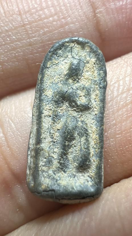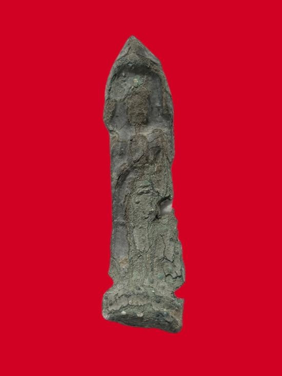 พระกรุวัดกลางตลาดพลู (พระวัดจันทาราม) เนื้อชิน พิมพ์ยืน พระกว้าง1.6ซม. สูง5ซม. |