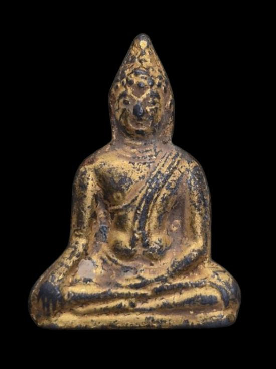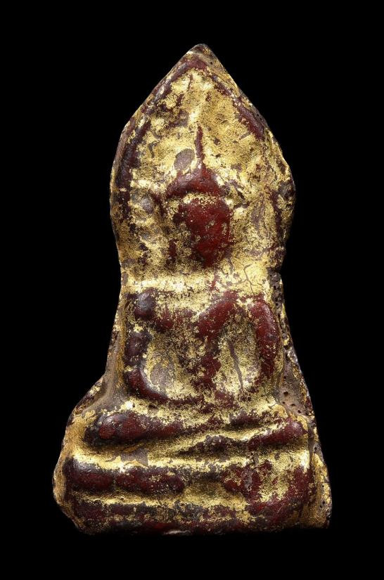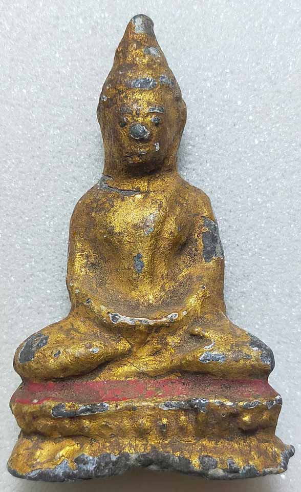 พระเนื้อชินตะกั่วทาทอง เก่าไม่ทราบที่ เคาะเดียวแดง |