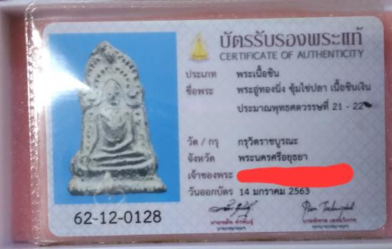 พระอู่ทอง  เนื้อชินเงิน จ.อยุธยา พร้อมบัตรรับรอง G-pra |