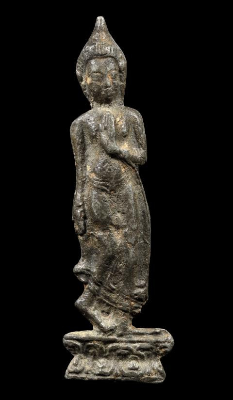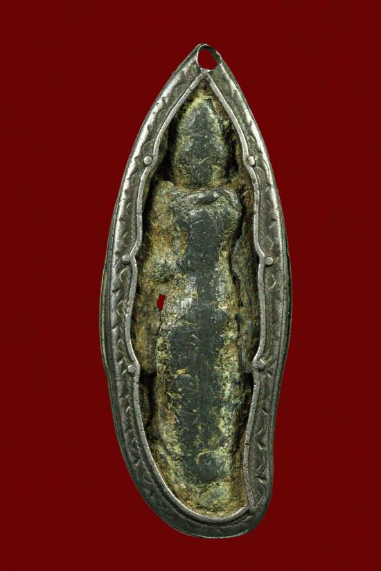 พระลีลาระเวง กรุวัดพระศรีรัตนมหาธาตุ เนื้อชินเงิน จ.สุพรรณบุรี พระกรุเดียวกับผงสุพรรณและมเหศวร |