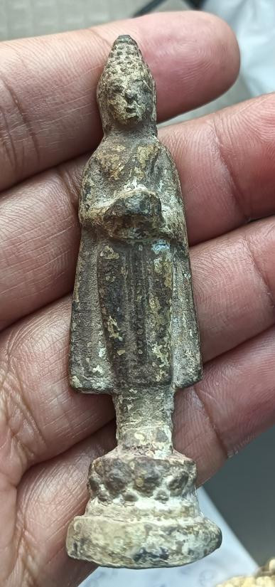 วัดใจ พระกรุเนื้อตะกั่วสนิมแดง ปางอุ้มบาตร โบราณ |