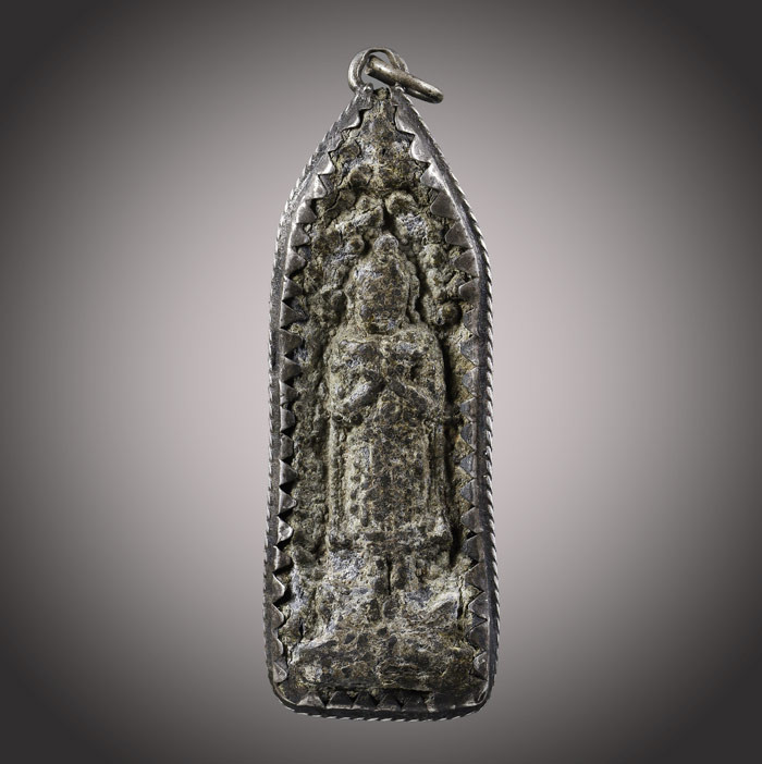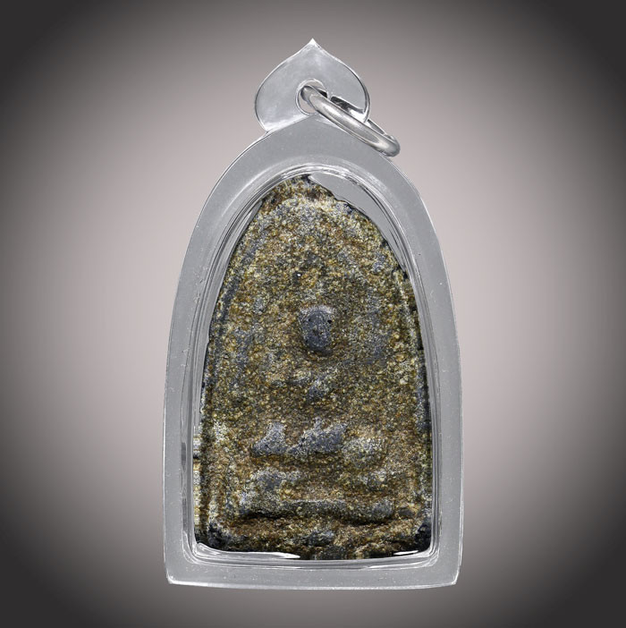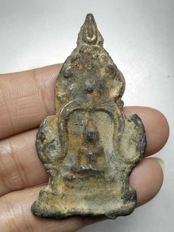 วัดใจ 1 ในเบญจภาคีพระกรุ พระมเหศวร กรุวัดพระศรีรัตนมหาธาตุ พิมพ์เล็ก เนื้อชินเงิน จ.สุพรรณบุรี พร้อมบัตรรับรองจากจีพระ |