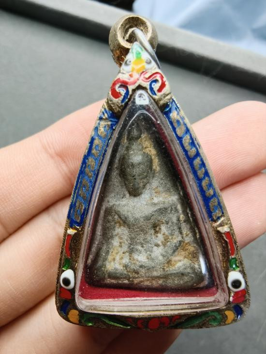 พระเนื้อชินสามเหลี่ยมองค์เล็กไม่ทราบที่ครับ |