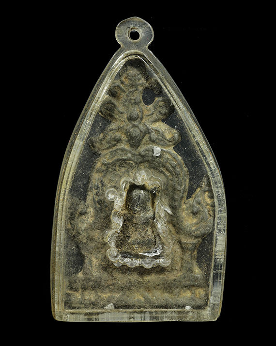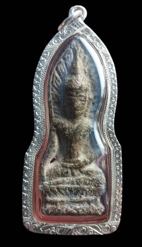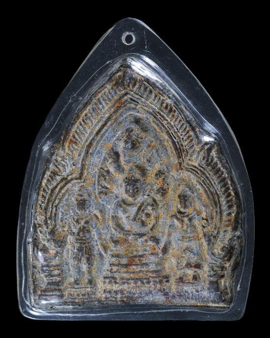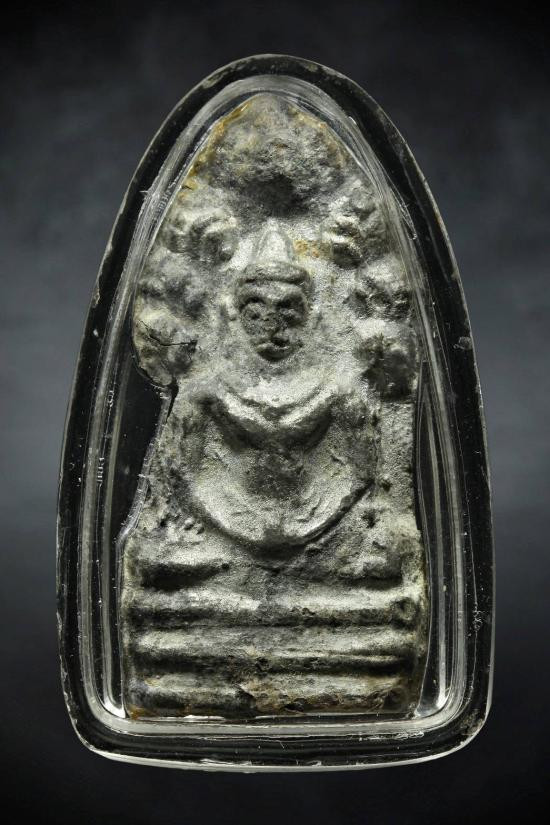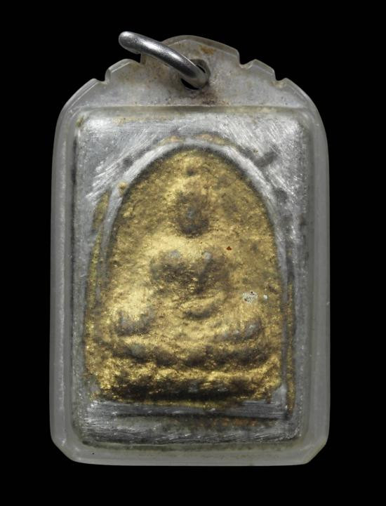 พระพุทธพิมพ์หน้ามงคล กรุวัดตะไกร เนื้อชินเงิน จ.พระนครศรีอยุธยา พร้อมเลี่ยมเงินสามห่วง+พร้อมบัตรการันตีพระ |
