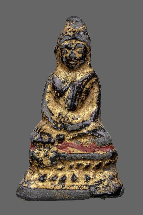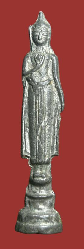 พระอู๋ทอง กรุวัดเทวสังฆาราม พิมพ์ฐานผ้าทิพย์ เนื้อตะกั่วสนิมแดง จ.กาญจนบุรี พร้อมบัตรรับรอง |