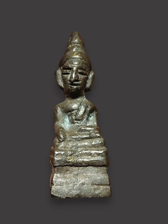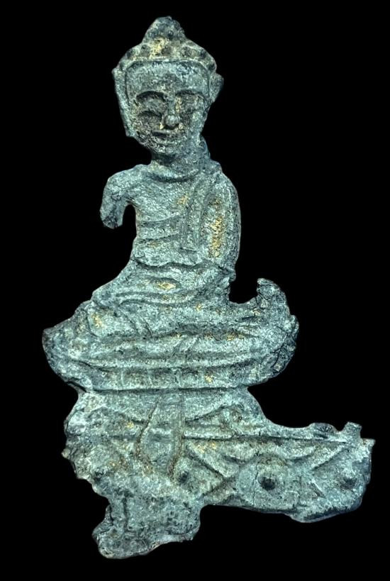 (วัดใจเริ่มที่300)พระพิมพ์สมาธิบนกลีบบัว (ไม่ทราบที่สร้าง)เนื้อชินเก่า ชนาดพระ ฐาน 1.5 cm สูง 2.9 cm |
