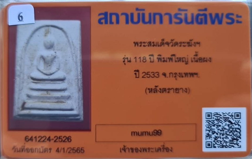 (เคาะแดง4500) +บัตรสมาคม สมเด็จเผ่า อกร่อง หูบายศรี |