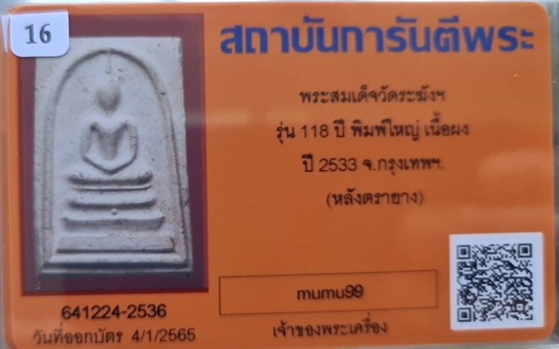 พระสมเด็จบางขุนพรหม วัดใหม่อมตรส รุ่นอุดมมงคล ปี พศ.2543..นิยมสุด..พิมพ์ใหญ่โรยผงเก่าเต็มๆ..พร้อมกล่องเดิม.. |