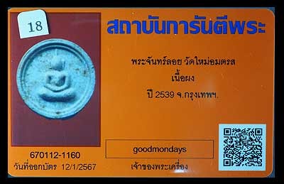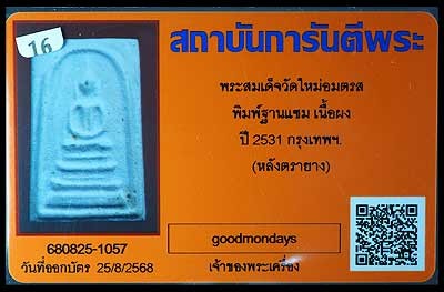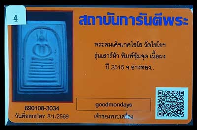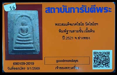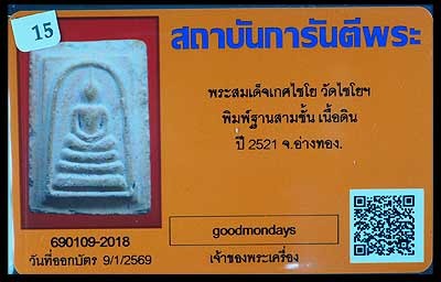 พระสมเด็จบางขุนพรหม ปี 2509 พิมพ์จันทร์ลอย +บัตรสมาคม |