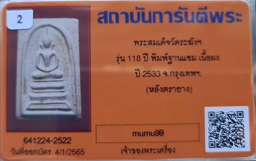 พระสมเด็จวัดระฆัง รุ่นอนุสรณ์ 118 ปี ( 22 มิถุนายน 2533 ) พิมพ์คะแนน |