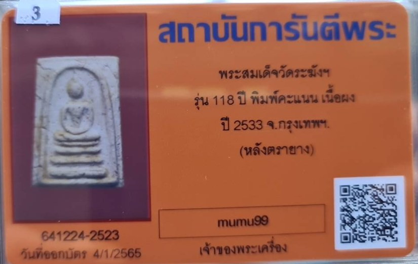 (เคาะแดง4500) +บัตรสมาคม สมเด็จเผ่า อกร่อง หูบายศรี |