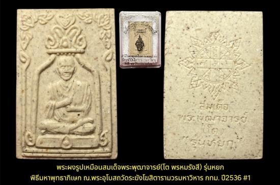 พระผงรูปเหมือนสมเด็จพระพุฒาจารย์(โต พรหมรังสี) รุ่นหยก พิธีมหาพุทธาภิเษก ณ.พระอุโบสถวัดระฆังโฆสิตารามวรมหาวิหาร กทม. ปี2536