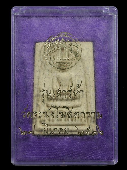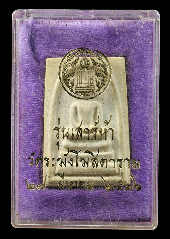 พระสมเด็จรุ่นเสาร์ห้า วัดระฆังโฆสิตารามวรมหาวิหาร พิมพ์ใหญ่ เกศทะลุซุ้ม(นิยม) ปี 2536 ปั๊มตรายาง พร้อมกล่อง |