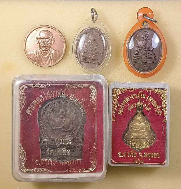 เหรียญสมเด็จโต 108ปี วัดระฆัง หลังเรียบ และเหรียญหล่อสมเด็จโต ฉลองกรุงรัตนโกสินทร์200ปี อีก3เหรียญ |