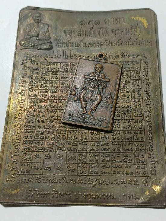 แผ่นคาถาเก่า วัดอินฯ +เหรียญพ่อโต วัดระฆังฯ ปี 2516 (เคาะเดียว) |