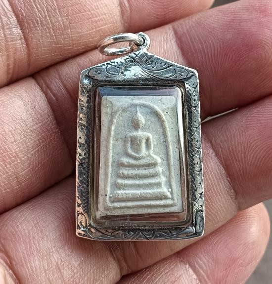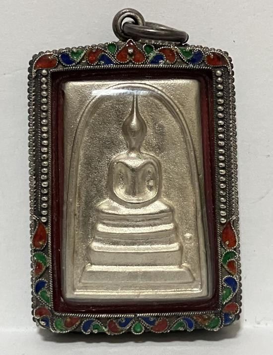 พระสมเด็จวัดระฆัง ด้านหลังสมเด็จฯ โต เนื้อเงิน โครงการใต้ร่มโพธิ์ทอง 2549 พร้อมเลี่ยม ตลับเงิน 925 พร้อมกล่องเดิม |