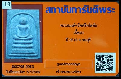 สมเด็จ ปี2516 วัดศรีพโลทัย ชลบุรี ลป.โต๊ะ ร่วมปลุกเสก |