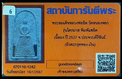 มีบัตรรับรองพระเครื่องของ