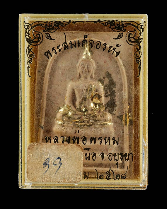 พระผงรุ่น ใหญ่ ได้ดี บารมีวรปัญโญ หลวงพ่อคูณ วัดบัลลัก์ นครราชสีมา พิมพ์เส้นด้าย เนื้อใบลาน ตะกรุดทองคำคู่ No.31 |