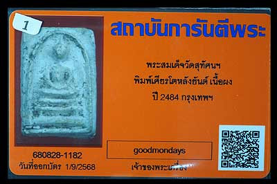 T24-สมเด็จคะแนน หลังหลวงปู่ทวดเนื้อว่าน เคาะเดียวแดง |