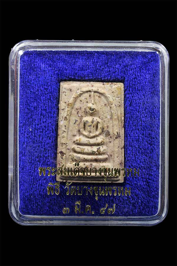 พระสมเด็จ รุ่น โป้ง เปรี๊ยะ หลวงพ่อสมบุญ วัดลำพันบอง จ.สุพรรณบุรี ปี 2544 ซึ่งเป็นรุ่นที่มีการปล้นรถจักรยานยนต์แล้วยิงผู้เสียหายซึ่งสวมใส่วัตถุ มงคลเป็นพระสมเด็จรุ่นนี้แล้วยิงไม่ออกมีแต่เพียงเสียงสับ |