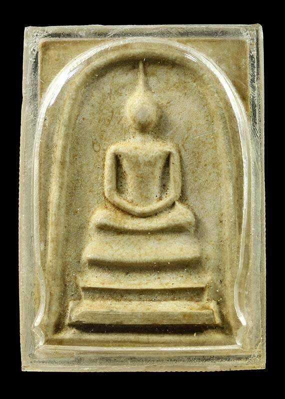 พระสมเด็จบางขุนพรหม พิมพ์ปรกโพธิ์อกตันกรอบกระจก หลวงตาพัน ปี 2502 วัดใหม่อมตรส กรุงเทพ มีบิ่นขอบด้านซ้ายองค์พระครับ |