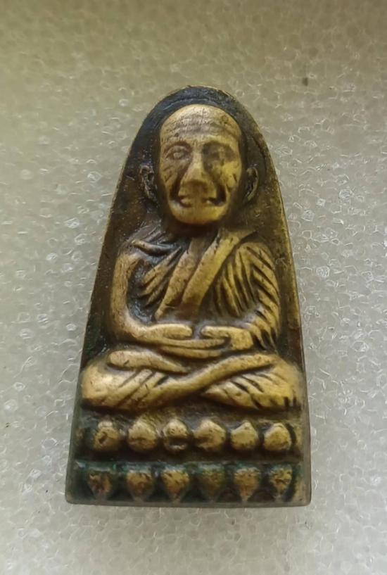 หลวงปู่ทวด วัดช้างไห้ พิมพ์หลังหนังสือเล็ก ว จุด เนื้อทองเหลือง ปี2505 |