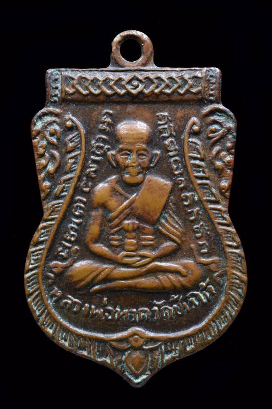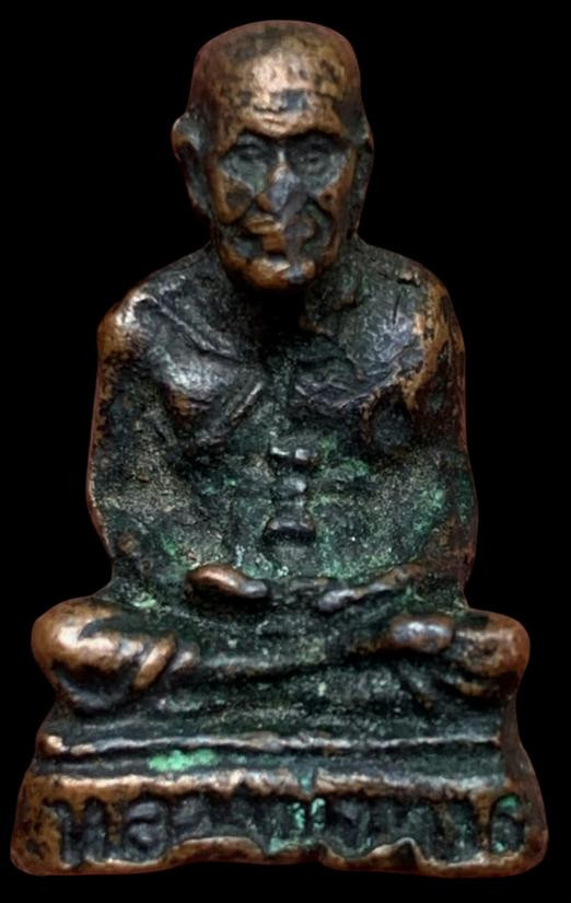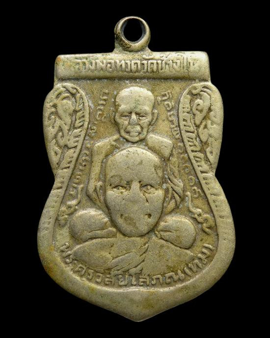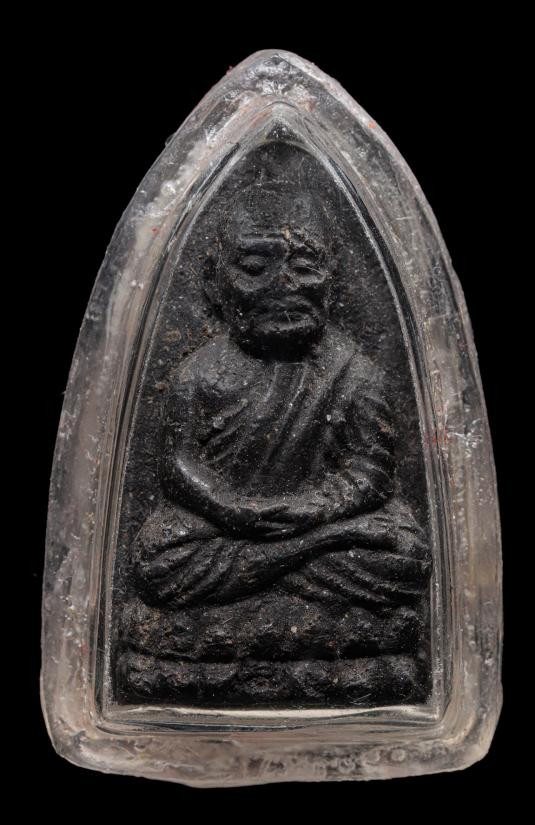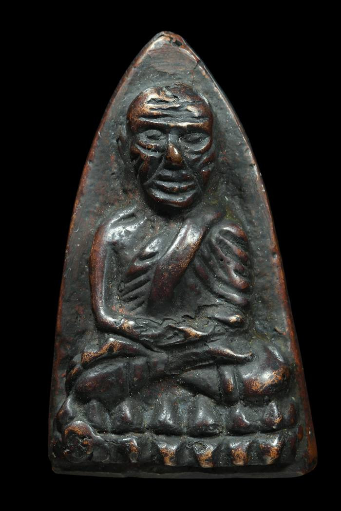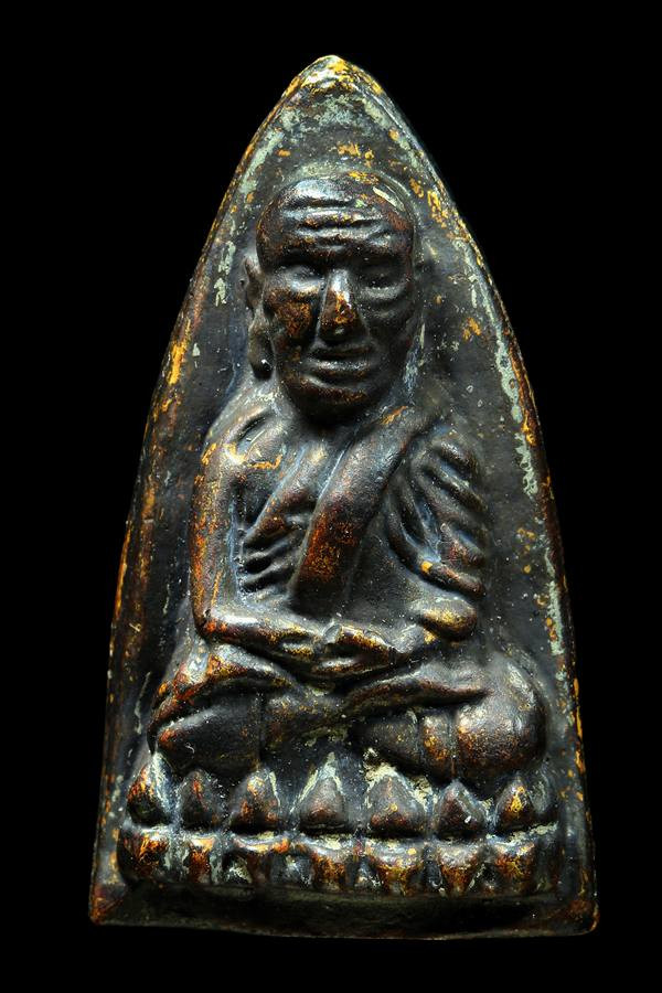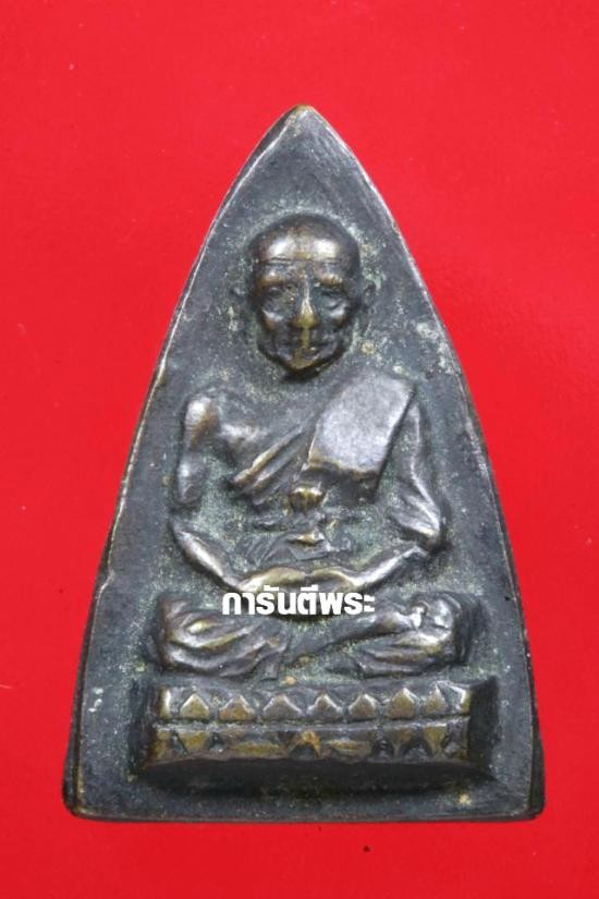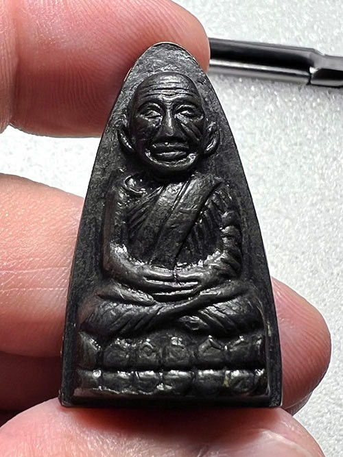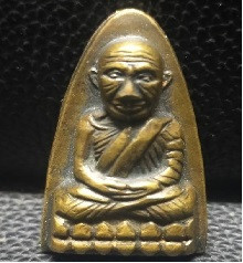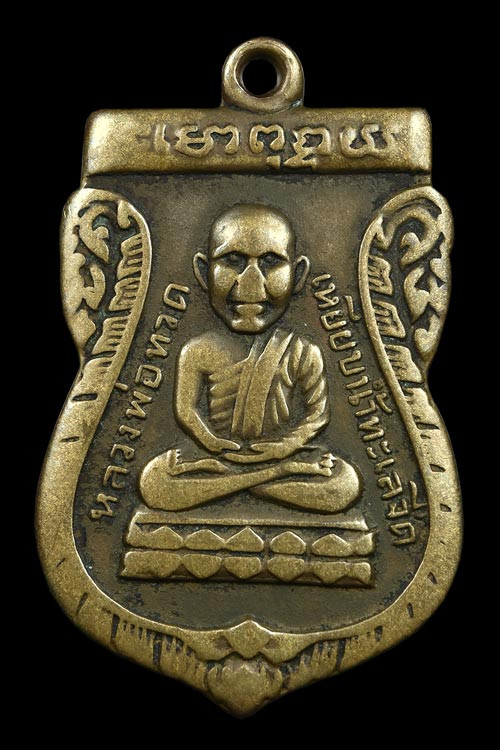 พระหลวงพ่อทวด พิมพ์หลังหนังสือเล็กมีหู เนื้อทองเหลืองรมดำ ปี2508 |