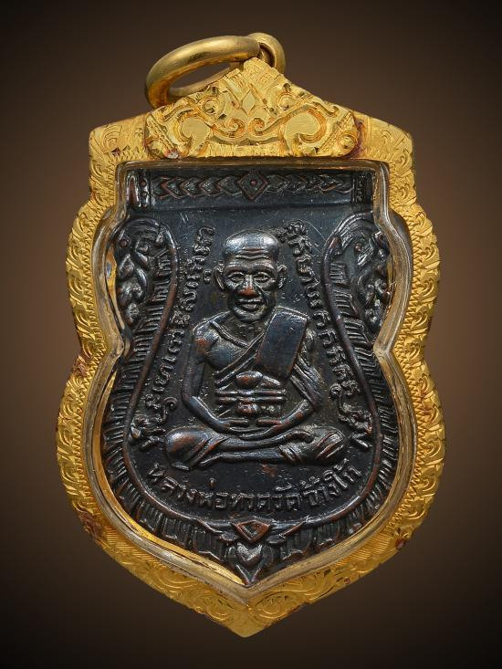 พระหลวงปู่ทวด วัดช้างให้ "หลังหนังสือใหญ่ พิมพ์หน้า ท." ปี ๒๕๐๘ (กะไหล่ทอง) |