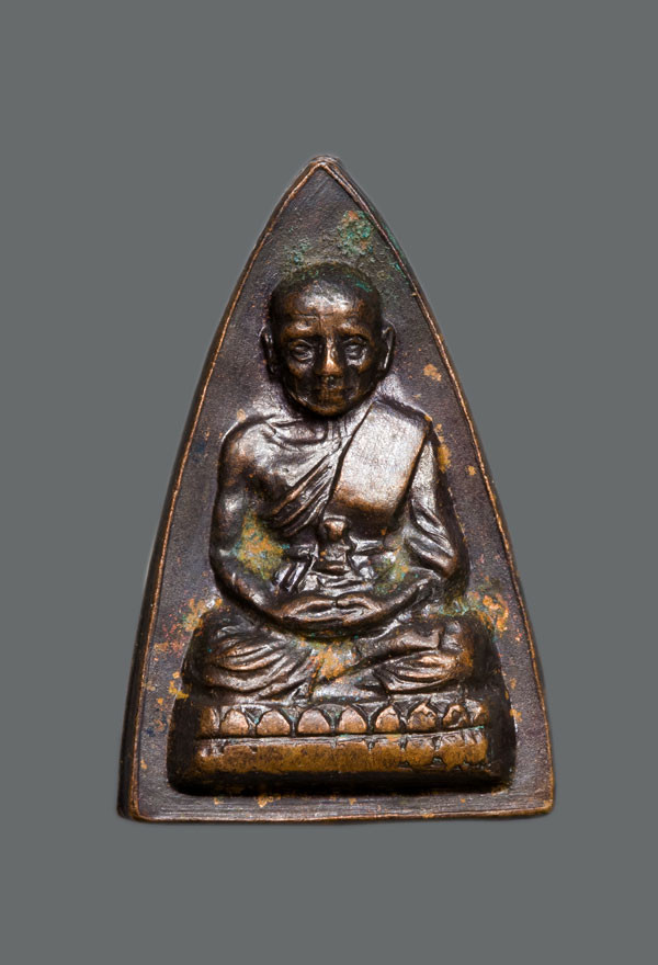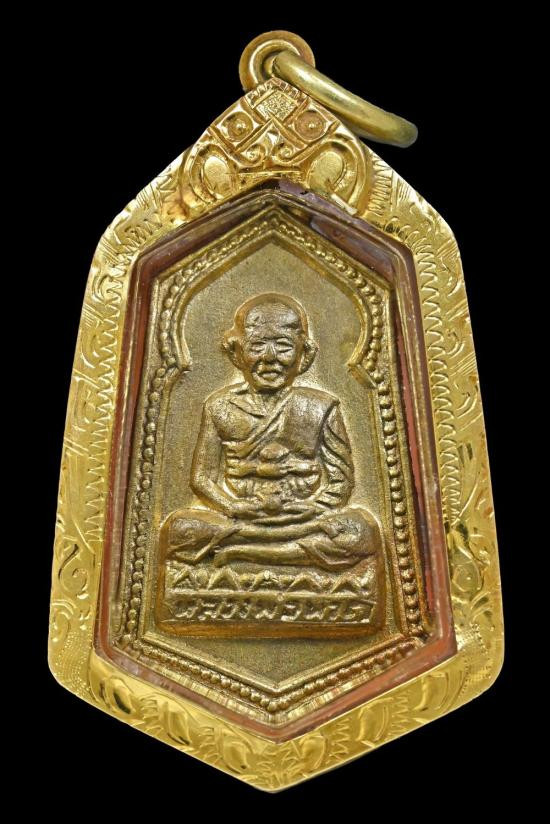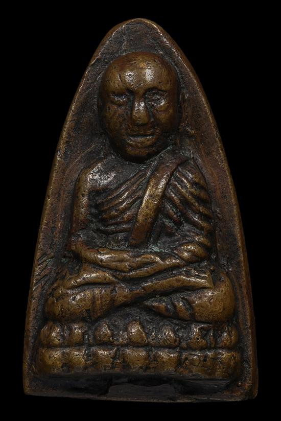 พระกลีบบัวหลวงปู่ทวด วัดช้างให้ บล็อก "รุน1" ปี 2507 เนื้อทองเหลืองรมดำ สภาพสวยมาก คมชัดเดิมๆ |