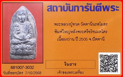 หลวงปู่ทวด ปั๊มซ้ำ ปี2505 สวยเดิมพร้อมบัตรรับรอง |