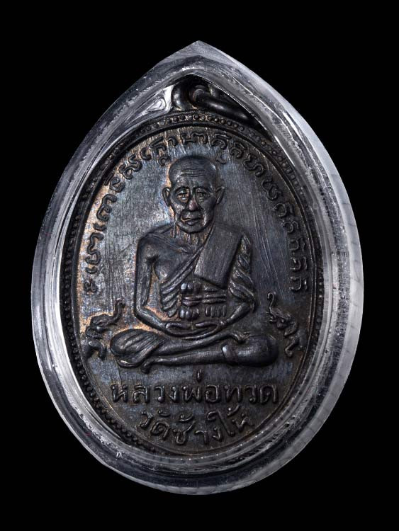 หลวงพ่อทวด ปี 24 เนื้อทองเหลืองรมดำหลัง 3 จุด |